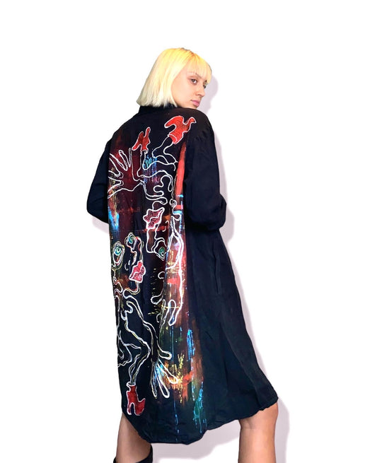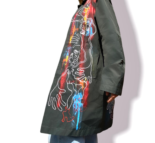 Hand Painted Front and Back Trench Coat Jacket